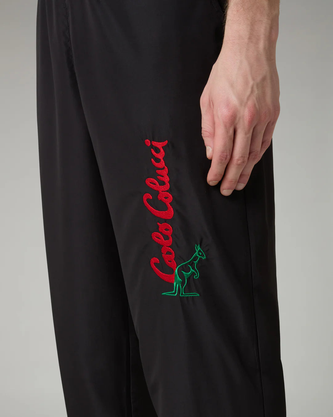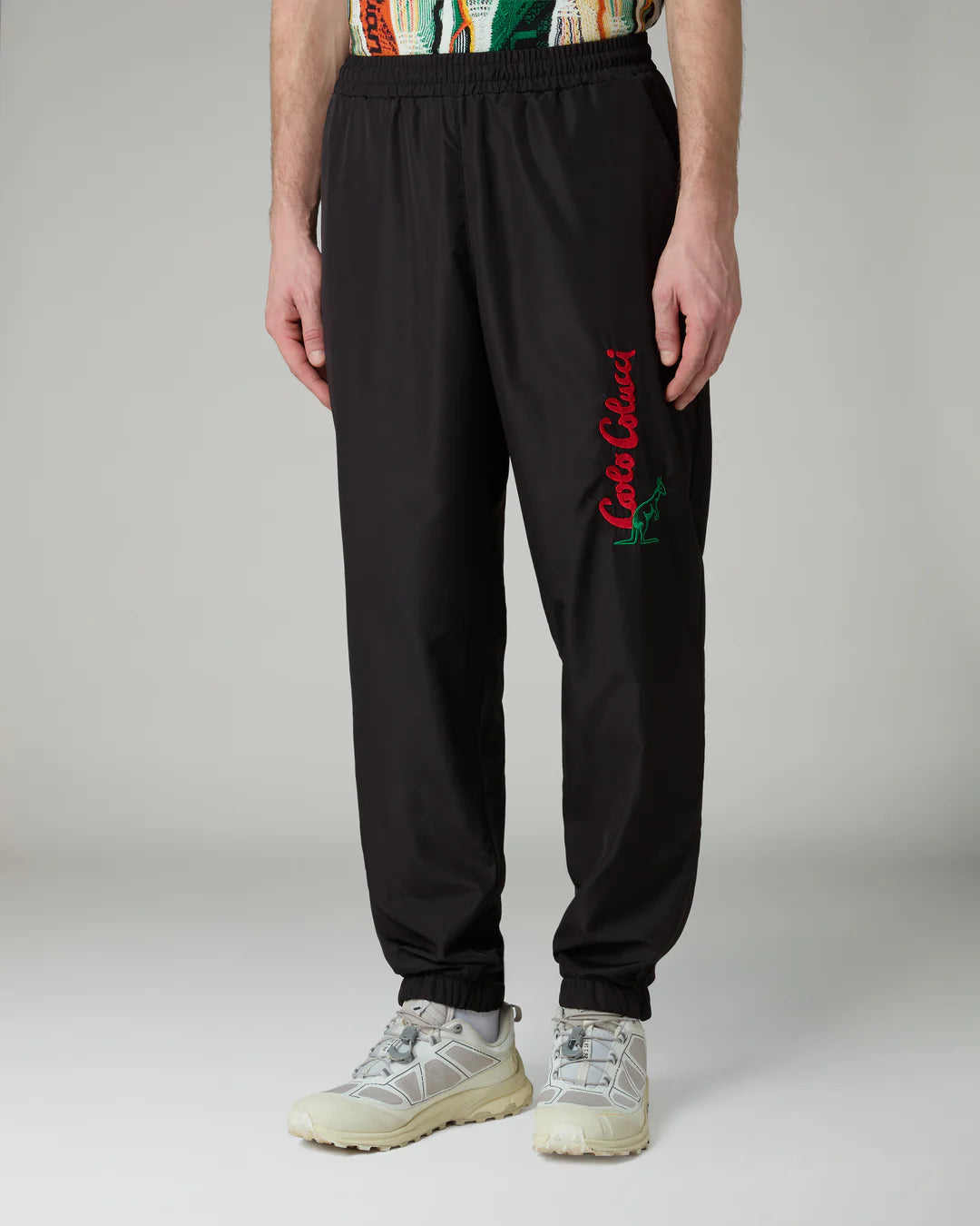 Pantaloni in tessuto “smash” con zip alle caviglie, arricchiti da un grande ricamo dove l'iconico canguro di Australian si fonde con il logo di Carlo Colucci. Comodità e carattere per un capo versatile ed esclusivo.