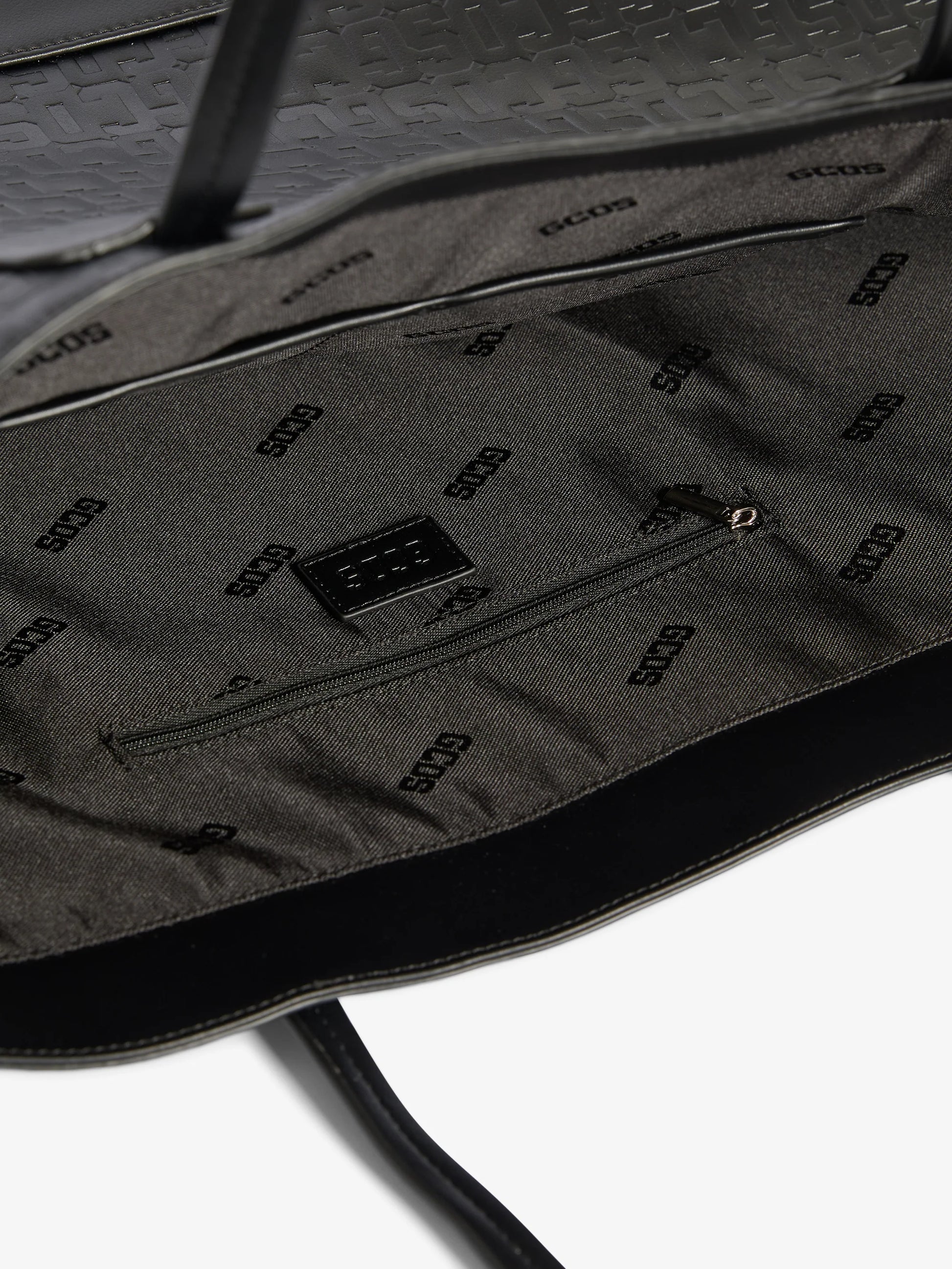 Shopper in poliuretano con superficie martellata opaca. Design ampio e strutturato con manici lunghi e pochette interna removibile coordinata. Logo GCDS goffrato tono su tono sul fronte.