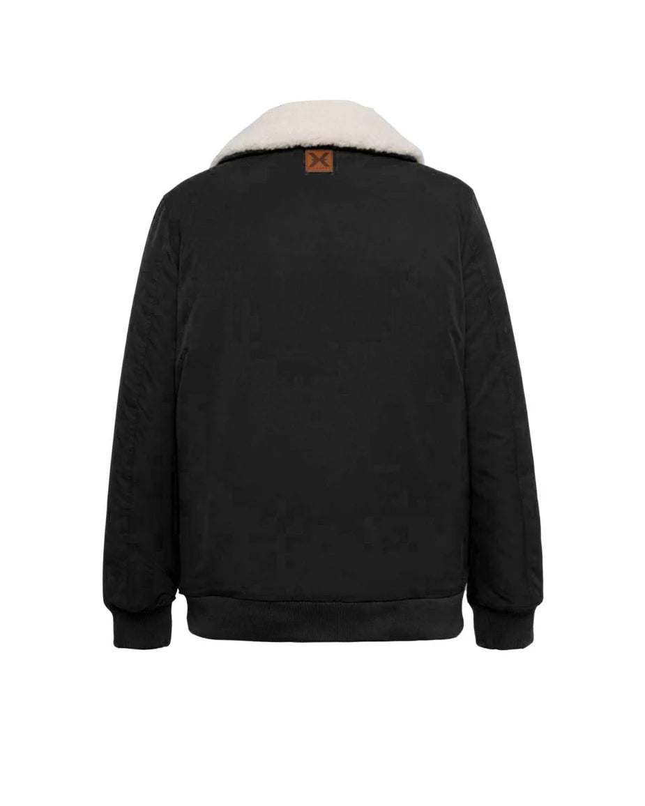 Bomber con collo effetto pelliccia e chiusura frontale nascosta. Le ampie tasche con zip e patta conferiscono un tocco tecnico e pratico, mentre i profili a costine definiscono lo stile casual e versatile del capo.